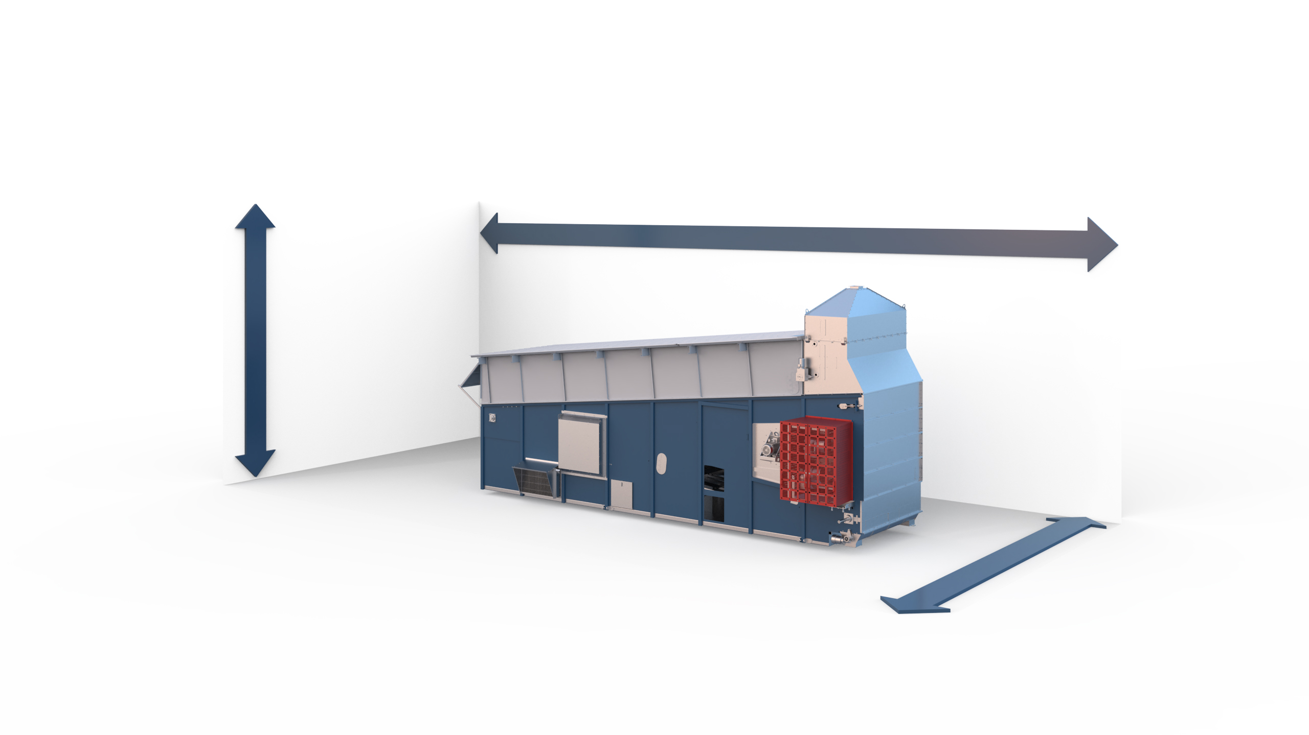 В задней части устройства расположен большой люк с торца. При открытии крышки через него выходит тёплый воздух и мелкий летучий мусор. Когда происходит охлаждение, мусор остаётся внутри, а поток тёплого воздуха направляется в горячую камеру и затем в камеру сушки. Это позволяет значительно снизить расходы на нагрев воздуха.