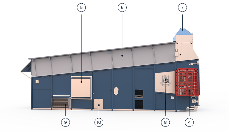 Процесс сушки полностью автоматизирован. Оператор контролирует весь технологический процесс на экране пульта управления, включая скорость перемещения, работу вентиляторов, температуру сушки и высоту перемещаемого зерна.