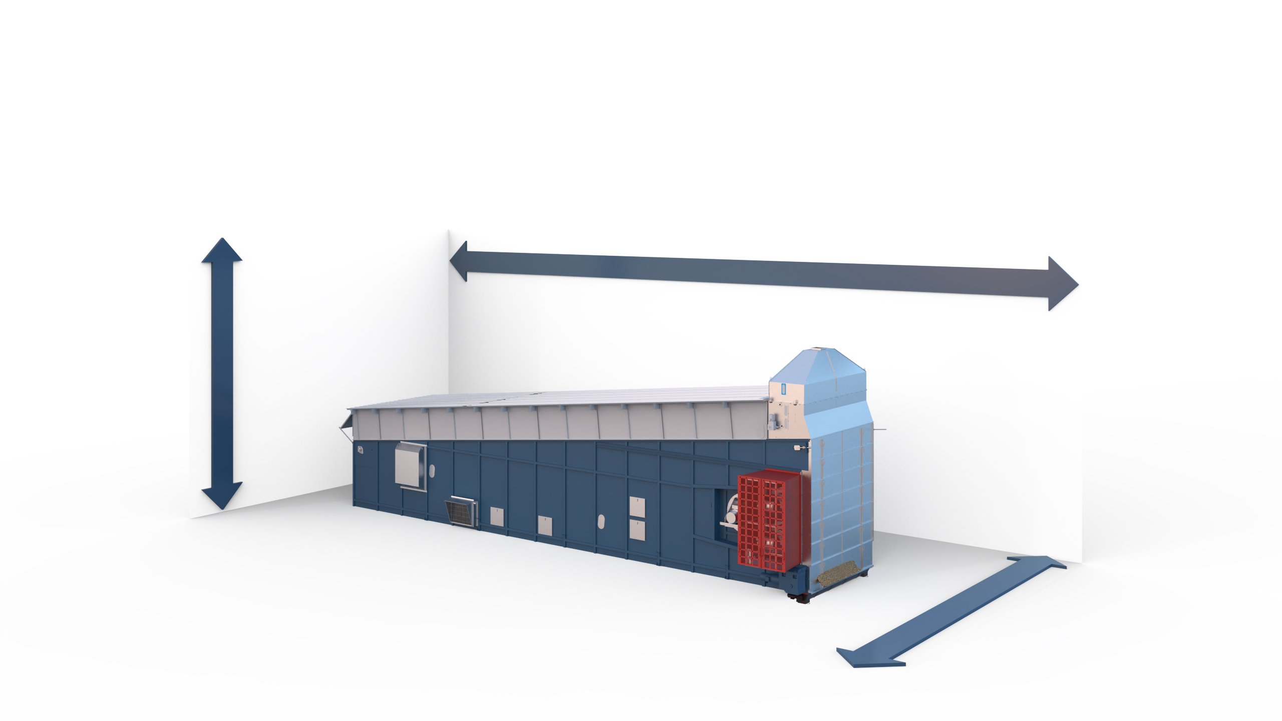 В задней части устройства расположен большой люк с торца. При открытии крышки через него выходит тёплый воздух и мелкий летучий мусор. Когда происходит охлаждение, мусор остаётся внутри, а поток тёплого воздуха направляется в горячую камеру и затем в камеру сушки. Это позволяет значительно снизить расходы на нагрев воздуха.